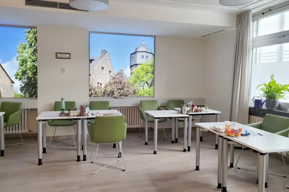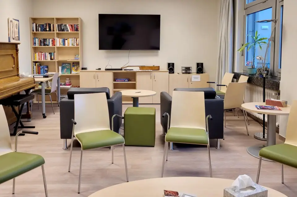 Nah an der Innenstadt, aber trotzdem im Grünen: Die Vitos Klinik für Psychosomatik befindet sich in Haus 6a im weitläufigen Vitos Park am Rand der Universitätsstadt Gießen. Trotz der citynahen Lage verfügt die Klinik über eine grüne, ruhige Umgebung, die sowohl Raum für Rückzugsmöglichkeiten als auch für aktives Erleben gibt.